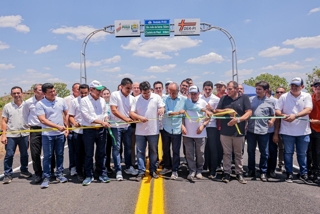 Em seguida, o governador entregou a pavimentação da rodovia PI-451, no trecho que liga Alto Longá a São João da Serra. A obra, executada pelo Departamento de Estradas de Rodagem (DER), tem 53 km de extensão e recebeu investimento de quase R$ 18 milhões. A nova via fortalece a integração entre os municípios e facilita o escoamento da produção agrícola.