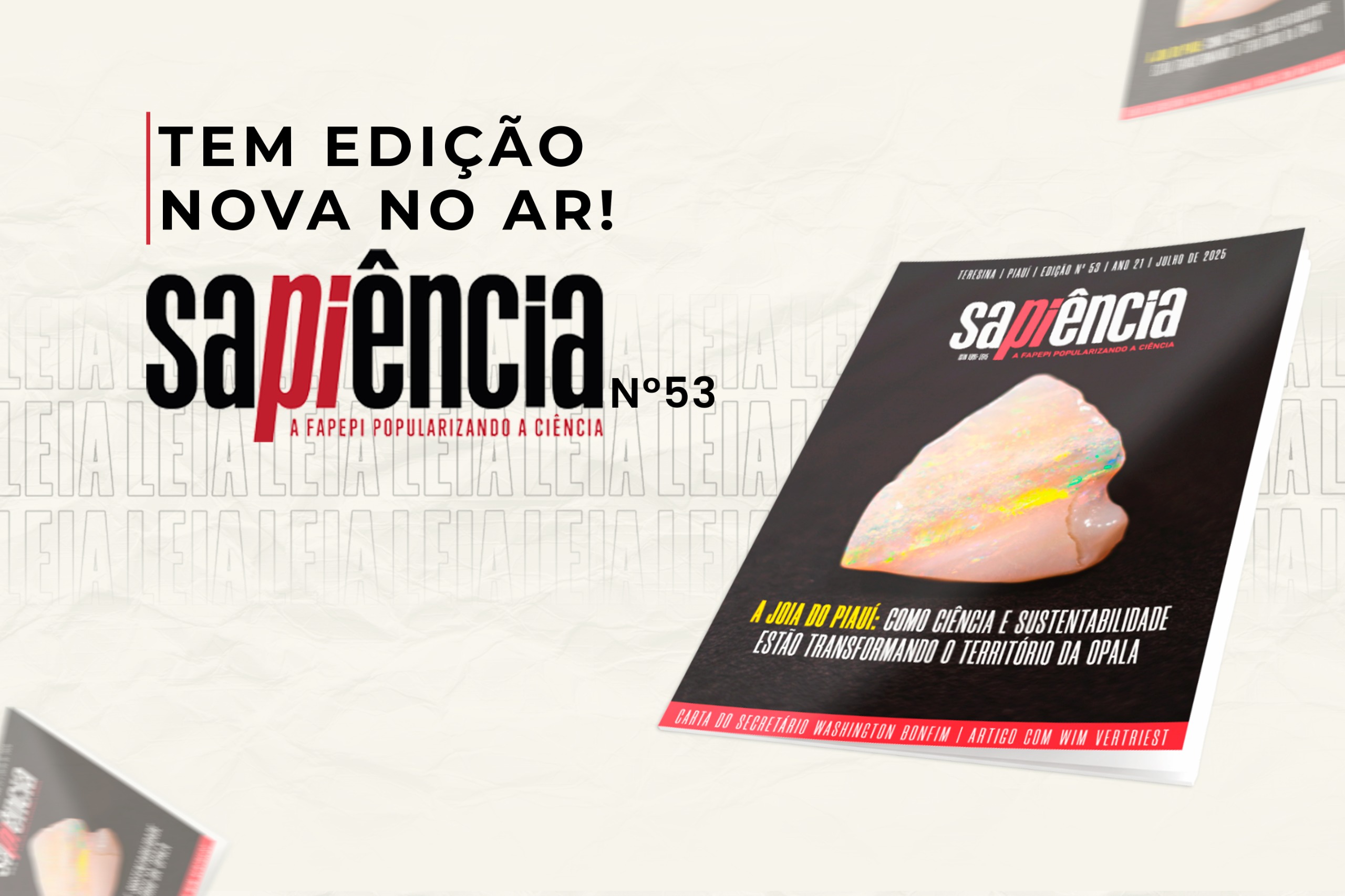 A Revista Sapiência dedica a 53ª edição à opala e mostra como a ciência e a sustentabilidade estão transformando a mineração do Piauí . Sob o tema “A jóia do Piauí: como ciência e sustentabilidade estão transformando o território da opala”, a publicação revela como a mineralogia, a inovação e o conhecimento científico vêm redesenhando a relação do estado com seus recursos naturais.