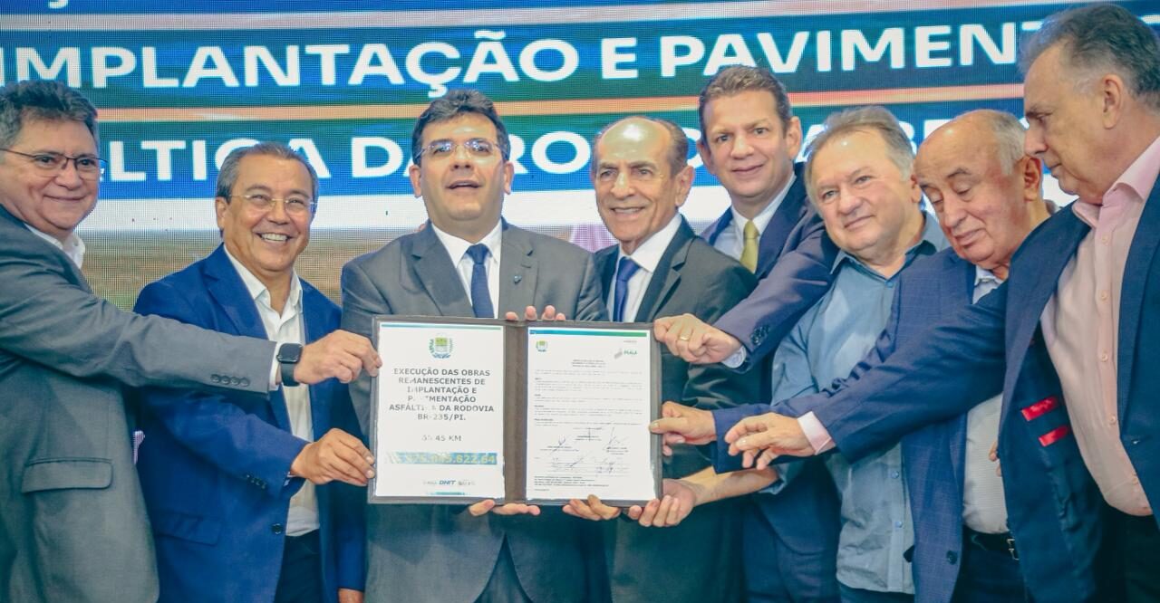 O governador Rafael Fonteles assinou, nesta sexta-feira (13), a ordem de serviço para pavimentação asfáltica de trechos remanescentes da rodovia BR-235, entre a divisa do Piauí com a Bahia e com o Maranhão, no sul do estado. Com investimentos de R$ 375 milhões, a obra encurtará em 300 km a distância entre as cidades de Caracol e Bom Jesus, essencial para o desenvolvimento do agronegócio na região do Matopiba e para o turismo. O prazo para conclusão é de 24 meses.